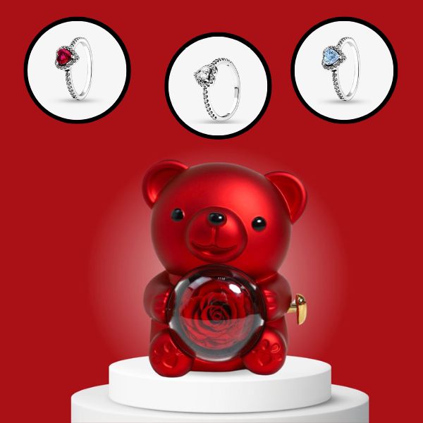 🌹💍 Eeuwige liefde geschenkset: ROSBEAR Sieradendoos & HEARTISO Beloftenring 💍🌹
