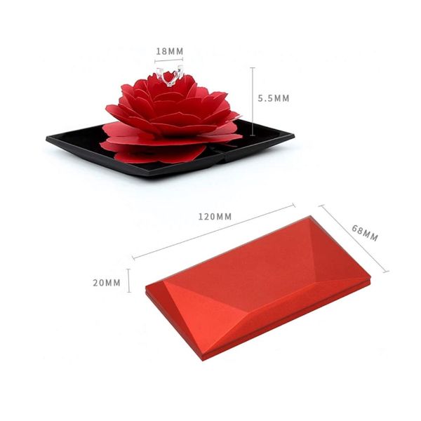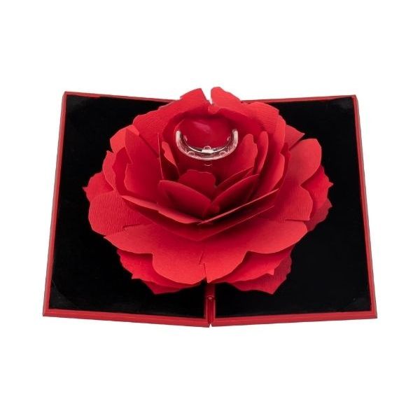 Gemaakt van hoogwaardige materialen, heeft de slanke coquille een duurzame plastic binnenkant en zacht flanel om de ring te beschermen, terwijl de buitenste roos gemaakt is van eersteklas papier voor een realistische en tijdloze look. Dankzij het compacte en discrete ontwerp kan hij gemakkelijk in een jaszak worden gestopt, waardoor hij de perfecte metgezel is voor onverwachte aanbiedingen, jubilea of speciale geschenken.