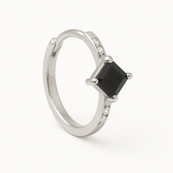 De Jupiter oorbel zal je betoveren met zijn magie en mysterie. Het middelpunt is een zwarte steen die alle blikken naar zich toe trekt en daaromheen zitten nog eens vier diamanten die de vier manen van Jupiter symboliseren. De oorbel is verkrijgbaar als enkel stuk en is geschikt om te combineren met alle andere oorbellen.