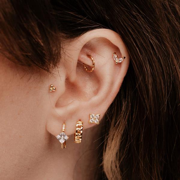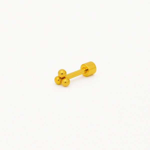 De Kalisto piercing heeft het allemaal in zich. De drie met elkaar verbonden bolletjes weerspiegelen kracht, stevigheid en balans. Door het onopvallende ontwerp is hij ook perfect te combineren met andere oorbellen. De oorbel is verkrijgbaar als enkel stuk en is geschikt om te combineren met alle andere oorbellen.