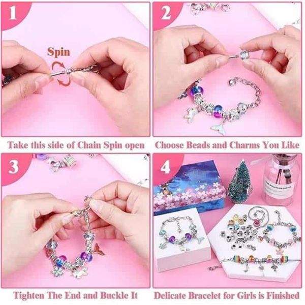 Maak armbanden op maat die passen bij jouw voorkeuren en stijl. De set bevat wel 60 verschillende gekleurde kralen en hangers, waardoor je de vrijheid hebt om je armbanden naar eigen inzicht te versieren!