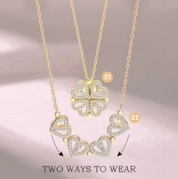 Onze vergulde ketting transformeert gemakkelijk van een klavertje vier in een rij harten!